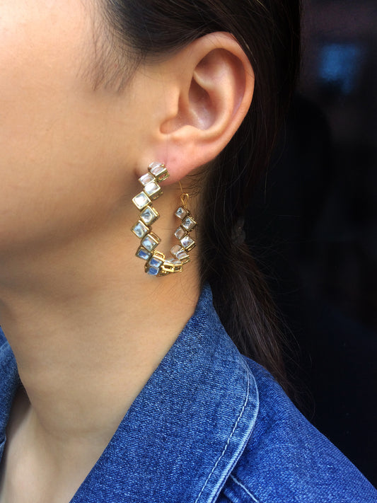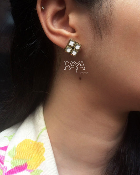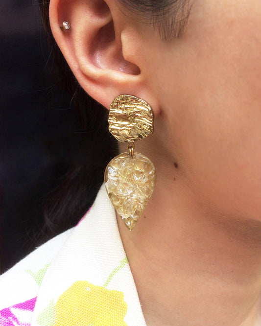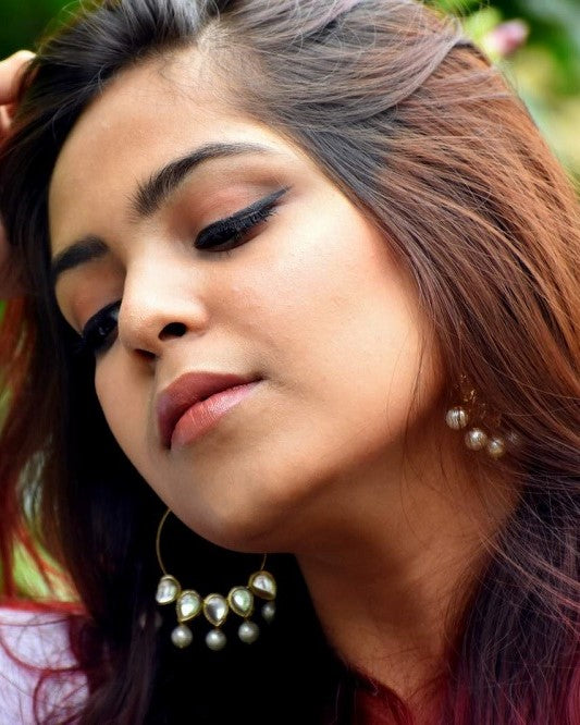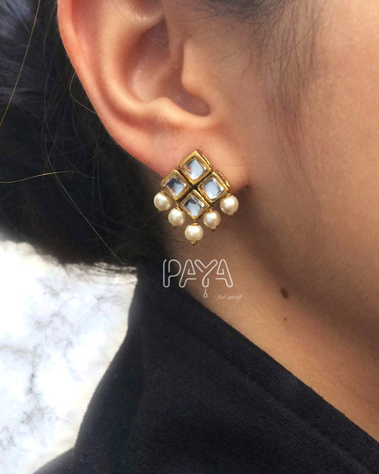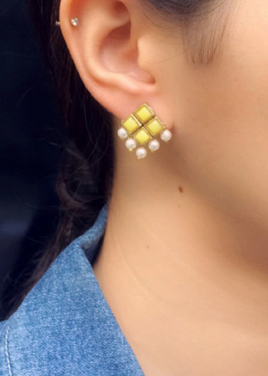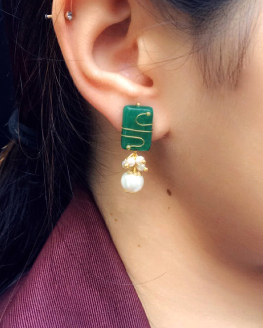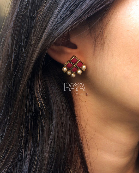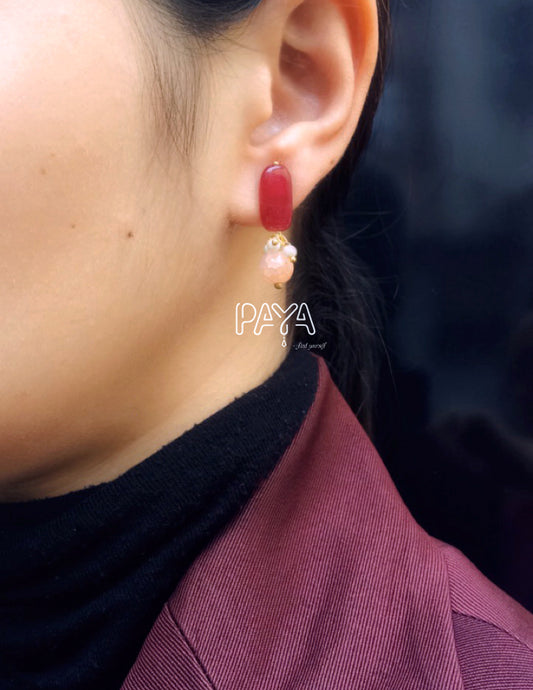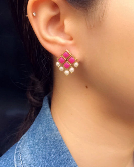 Dark Pink Resin Stone and Pearl Stud Earrings