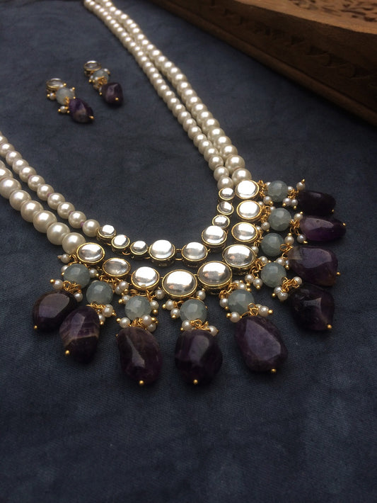 Amethyst and Kundan Long Layered Necklace Set