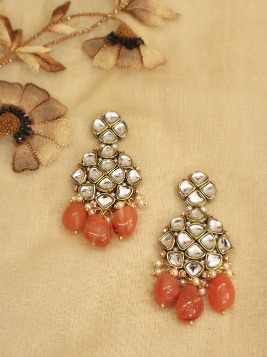 Carnelian and Kundan Long Layered Necklace Set