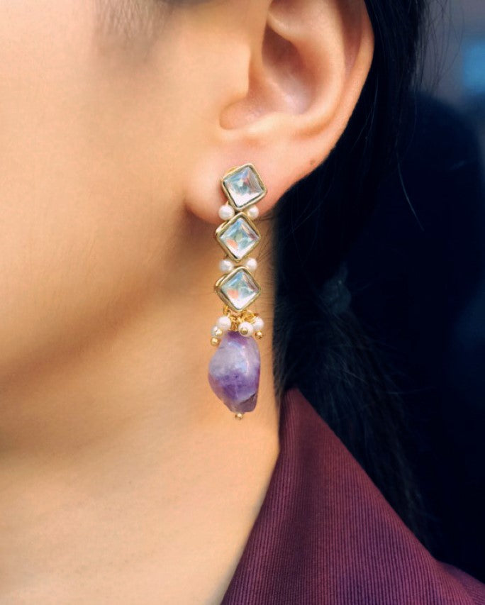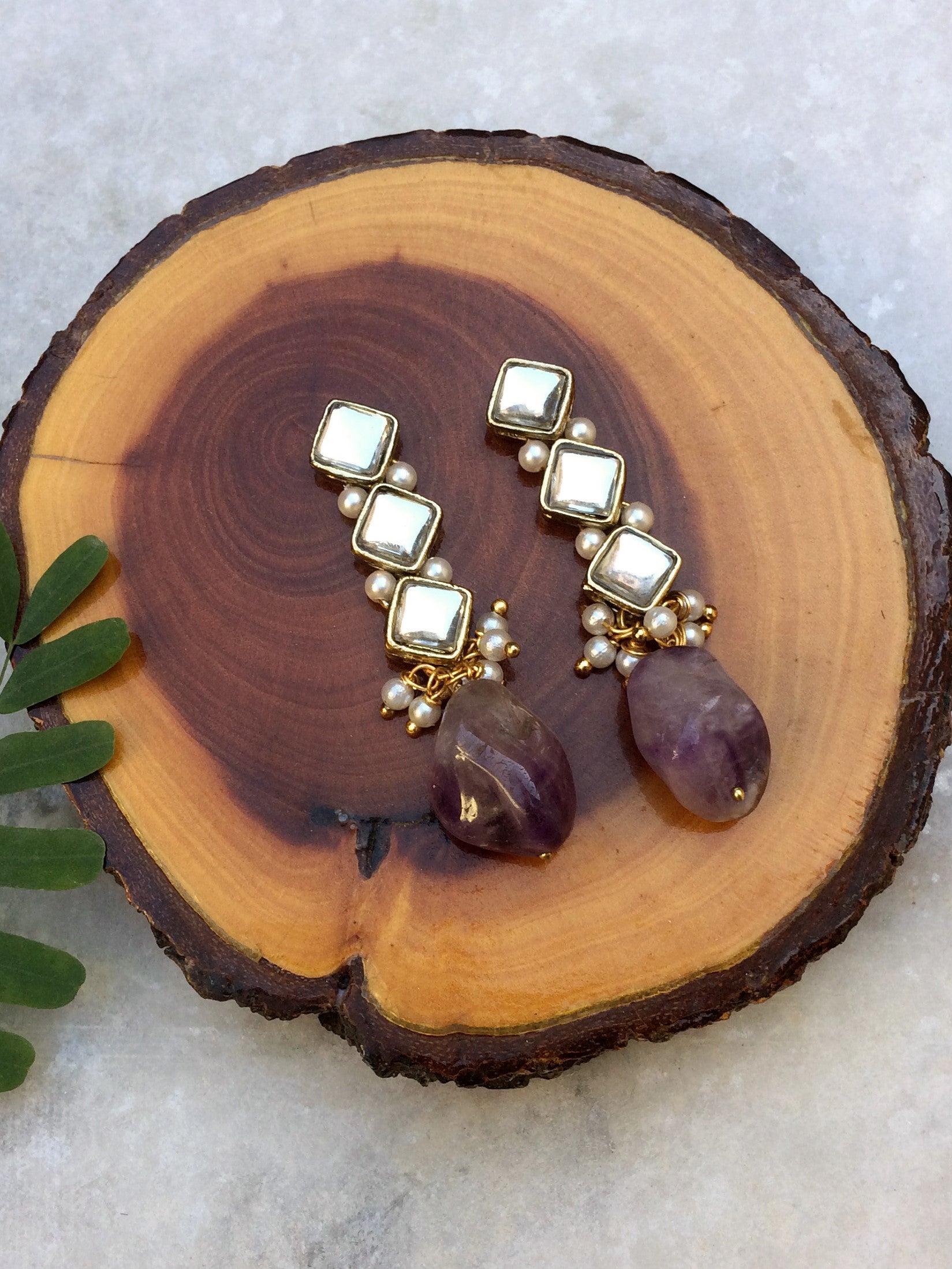 Kundan, natural amethyst stone, faux pearl, glass, and metal