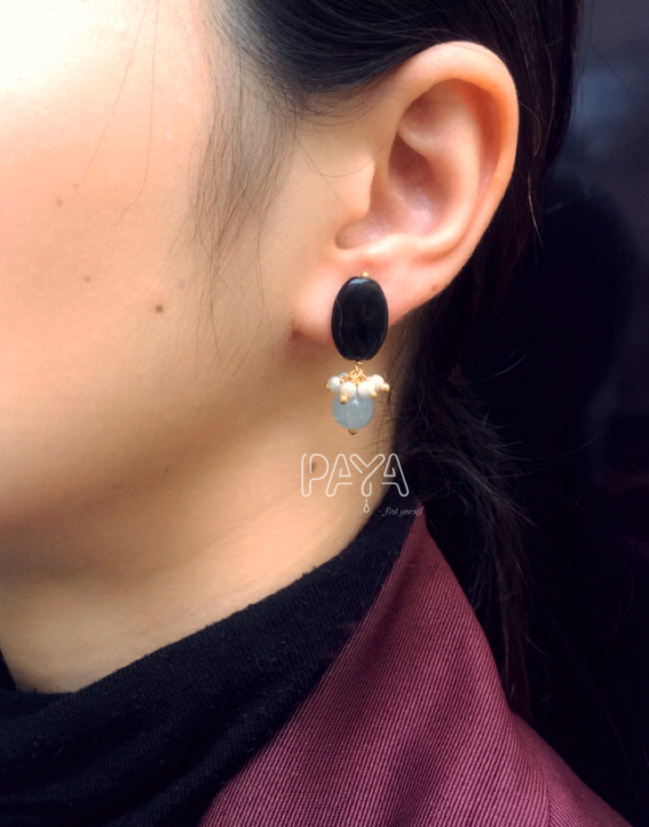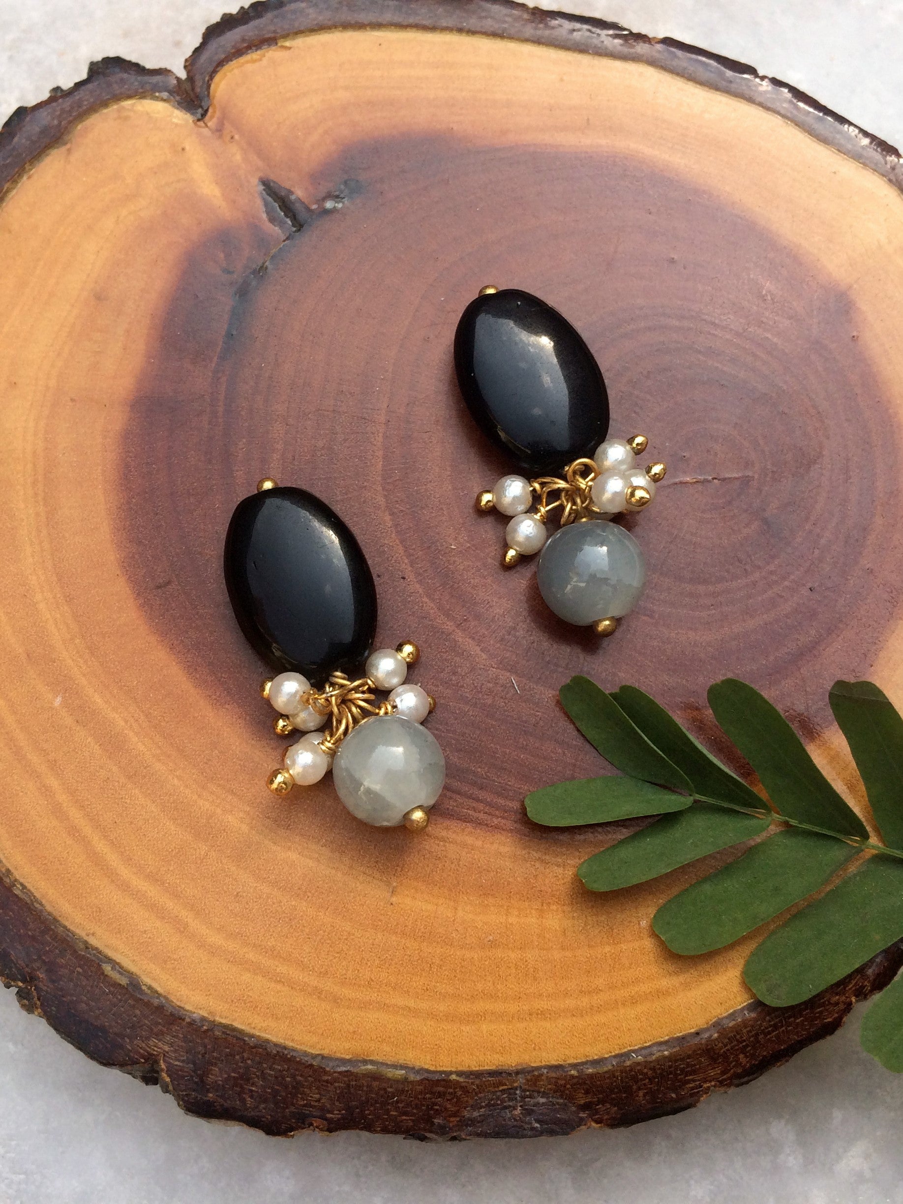 Black Stone and Crackled Pearl Stud Earrings