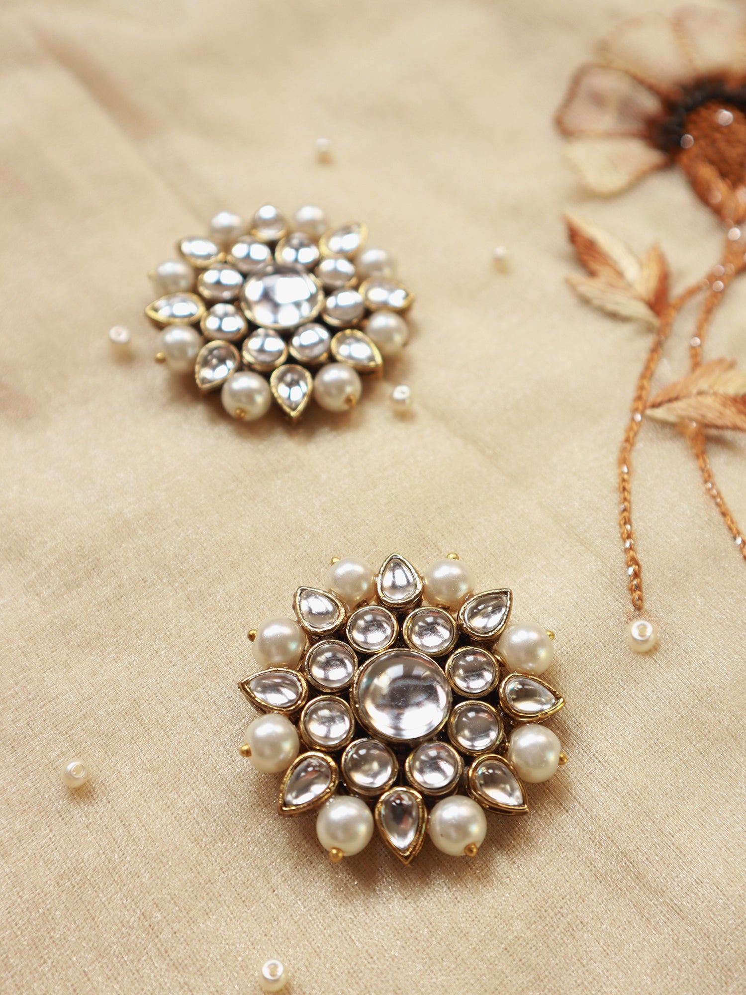 Kundan, glass, faux pearl, and metal