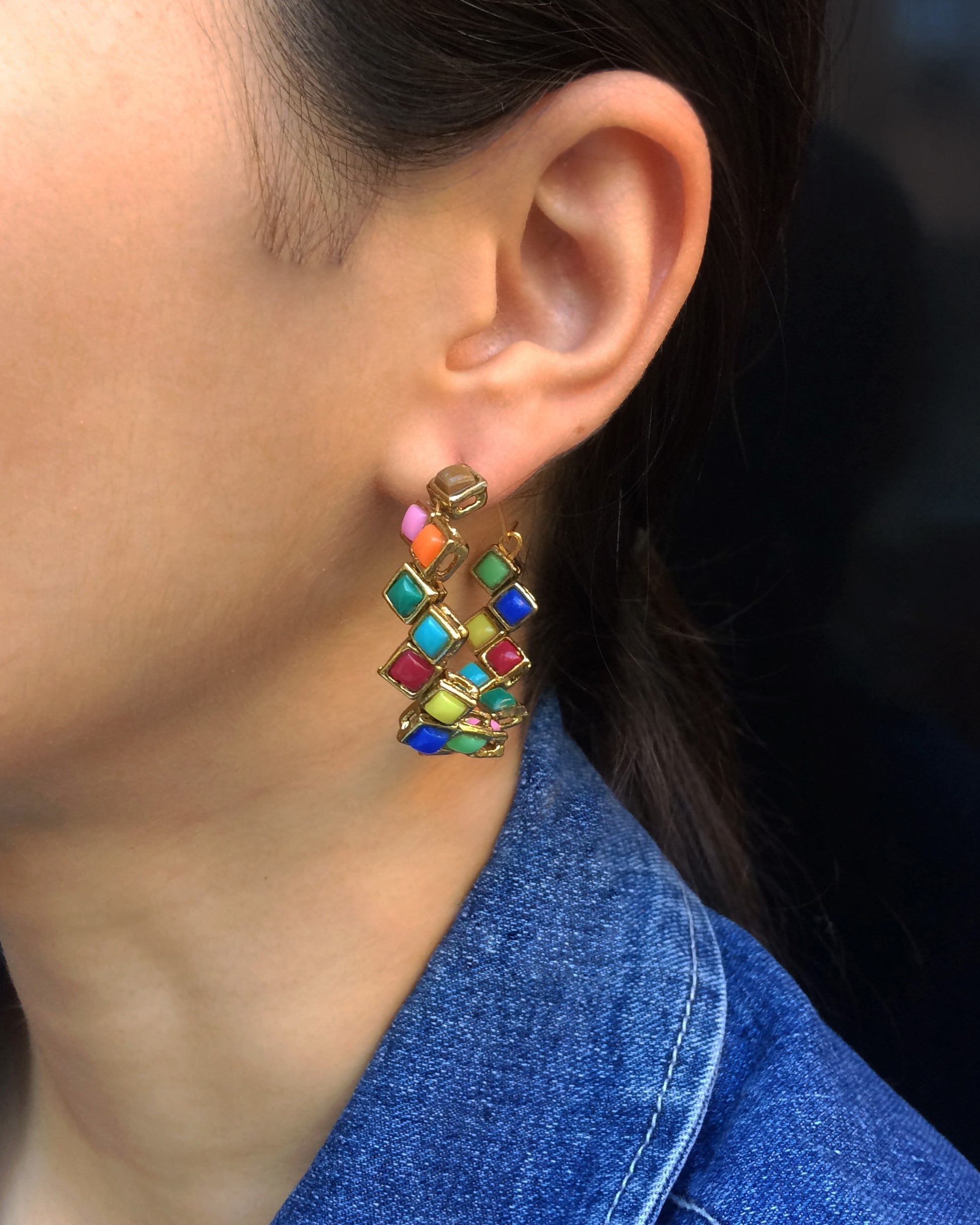 Multicolor Square Hoop Earrings