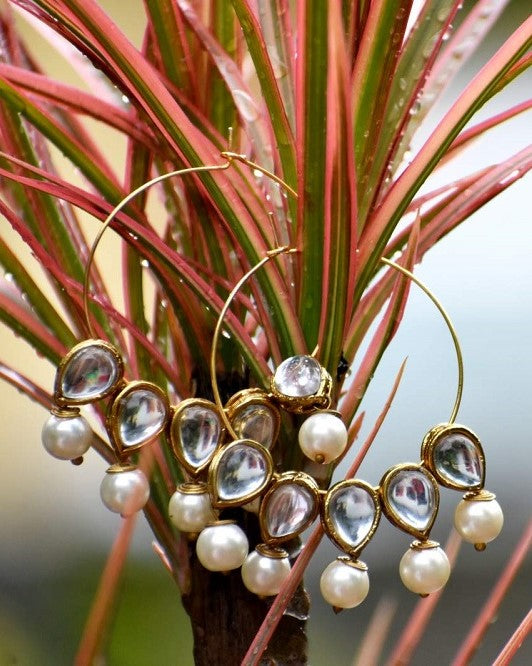 Pearl and Kundan Hoop Earrings
